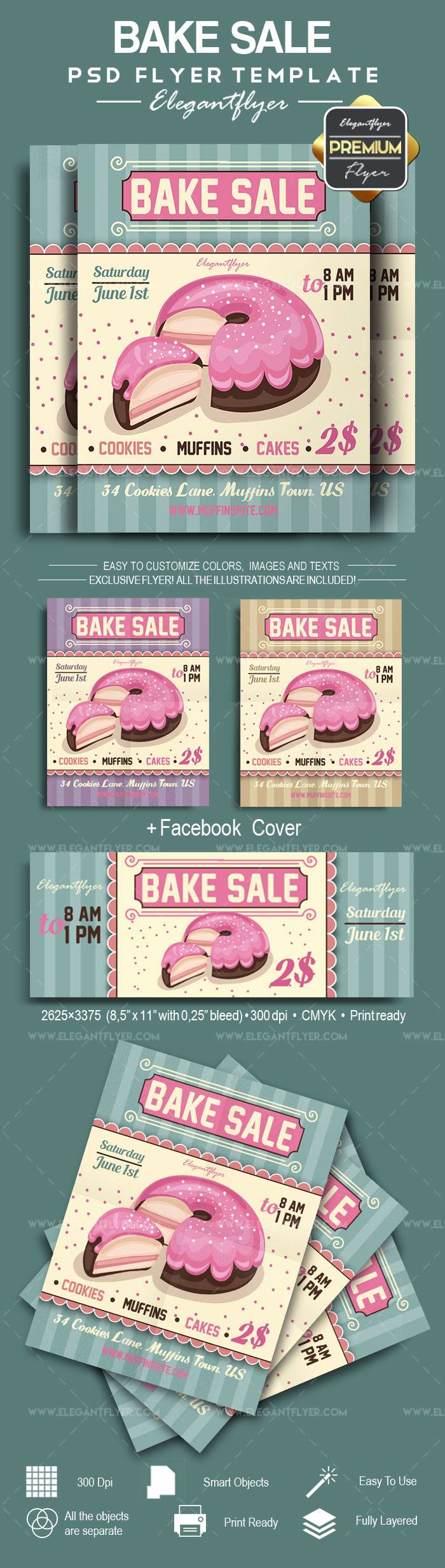 烘烤出售 - 传单PSD模板+ Facebook封面