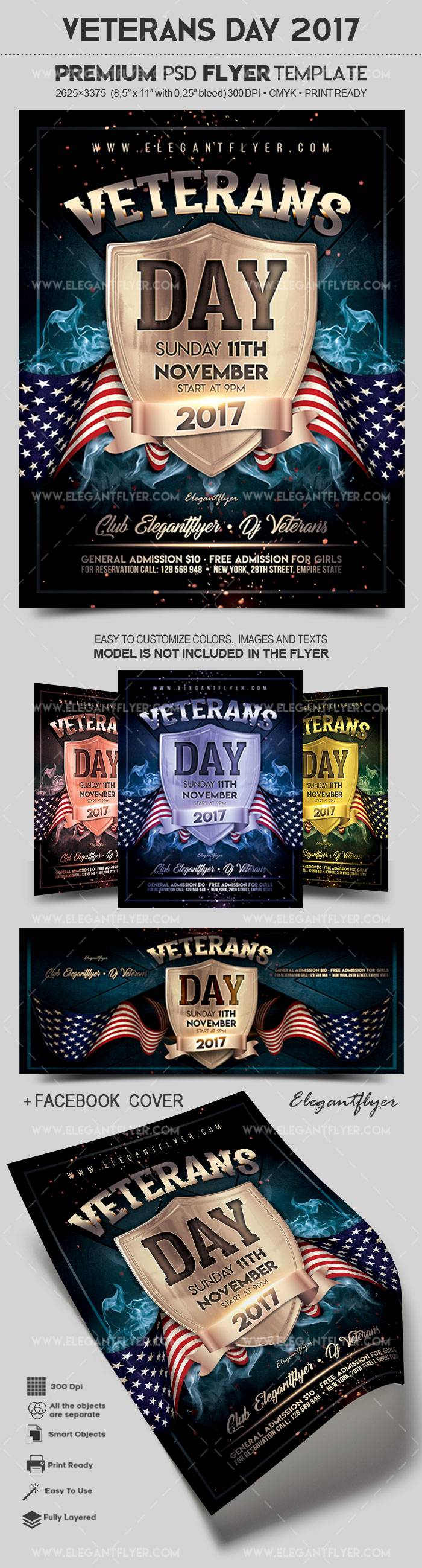 退伍军人节2017年 - 传单PSD模板+ Facebook封面