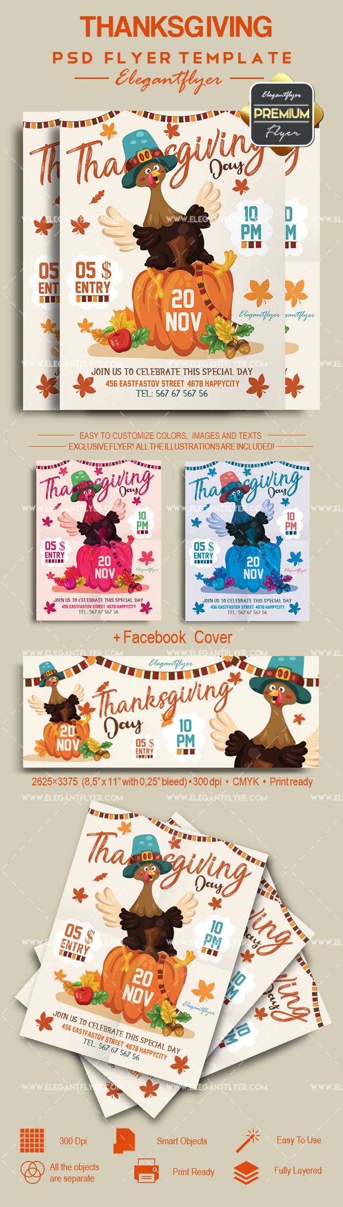 感恩节 - 传单PSD模板+ Facebook封面