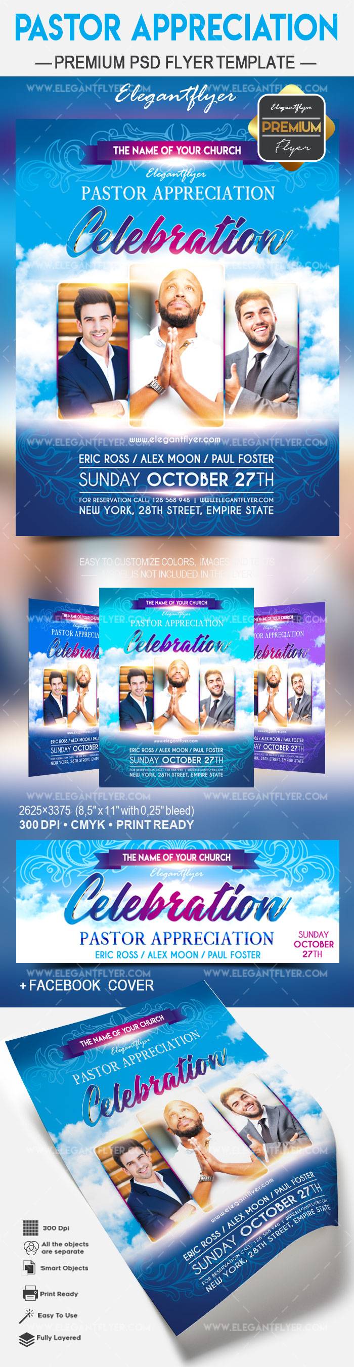 牧师欣赏 - 传单PSD模板+ Facebook封面
