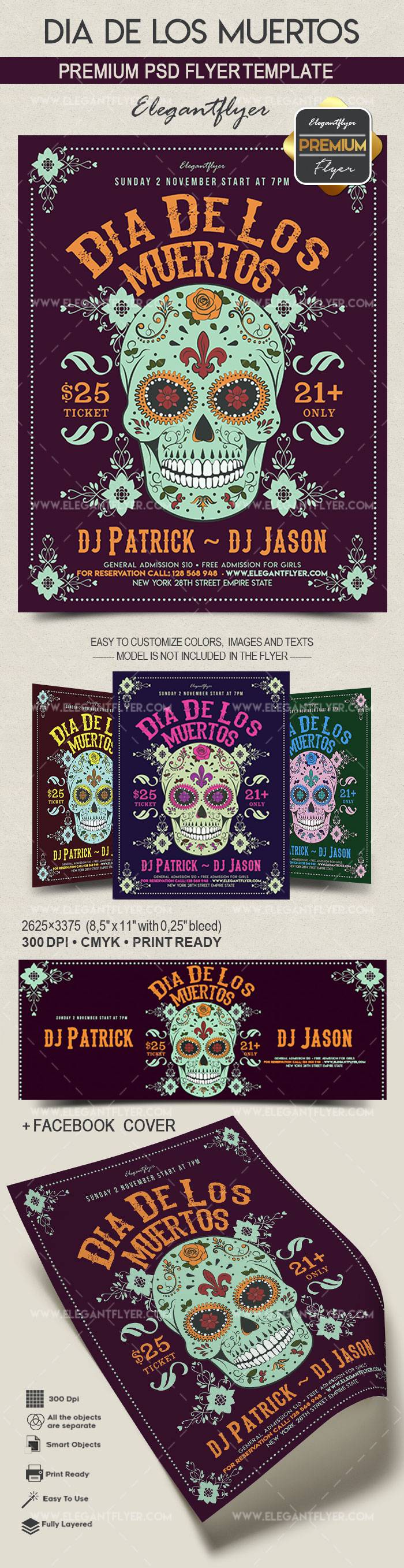 Dia德洛斯穆埃 - 传单PSD模板+ Facebook封面