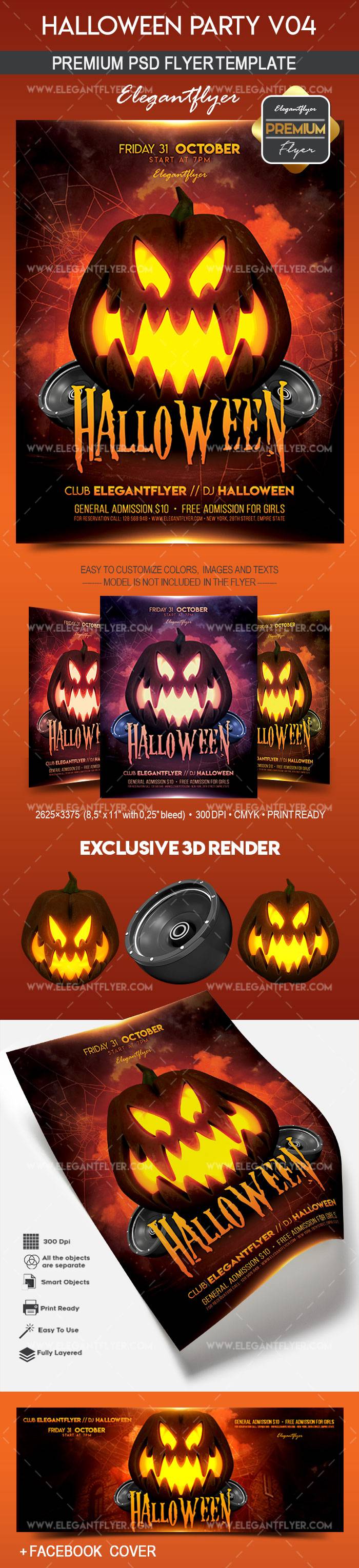 万圣节派对V04 - 传单PSD模板+ Facebook封面
