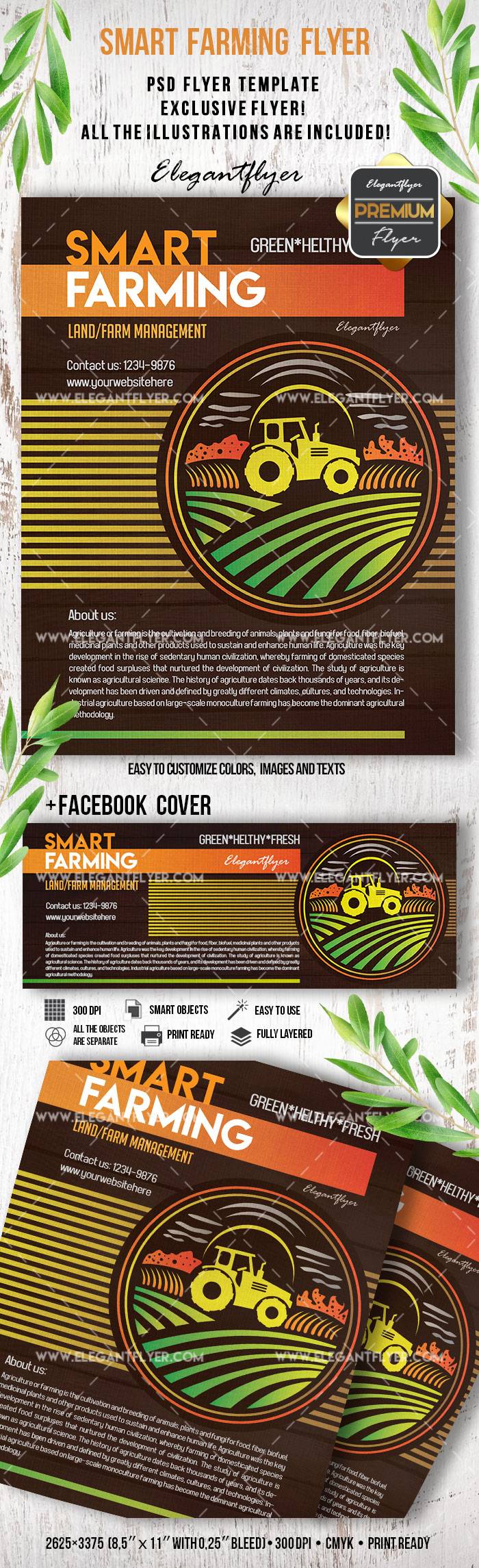 智能农业 - 传单PSD模板+ Facebook封面
