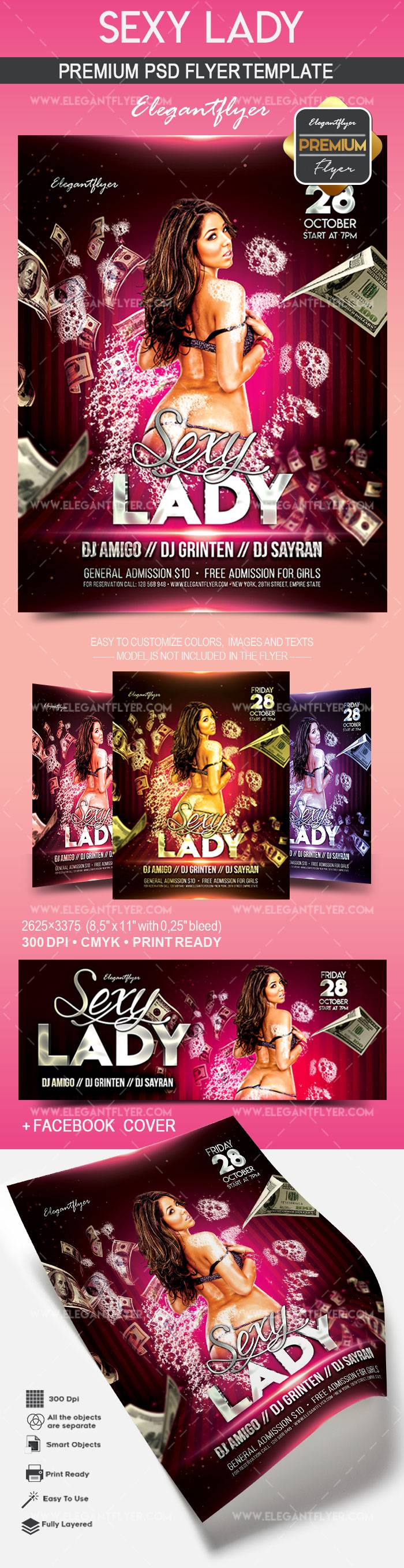 性感的女士 - 传单PSD模板+ Facebook封面