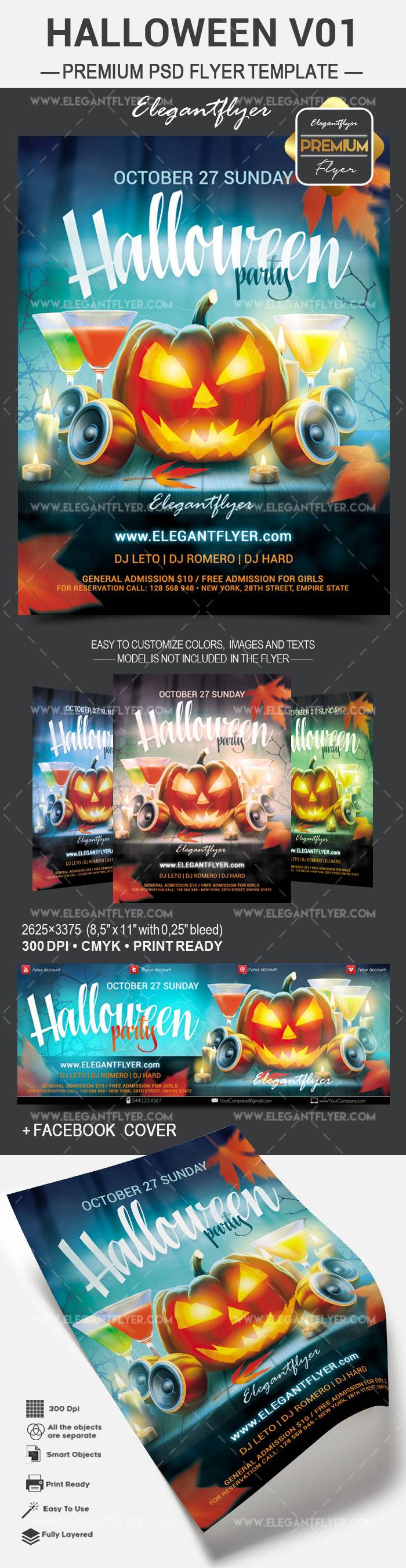 万圣节派对 - 传单PSD模板+ Facebook封面
