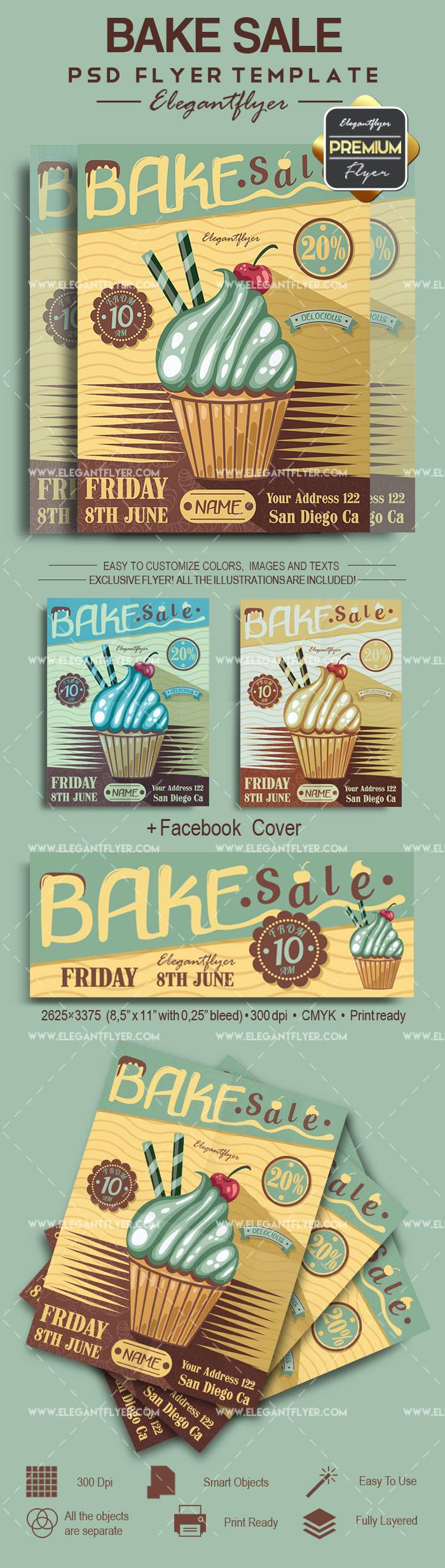 烘烤出售 - 传单PSD模板+ Facebook封面