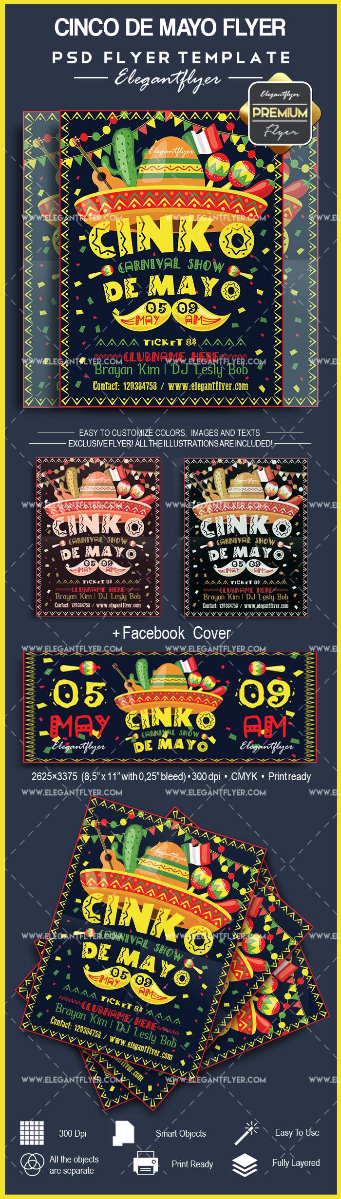 Cinco de Mayo传单模板 - 传单PSD模板+ Facebook封面