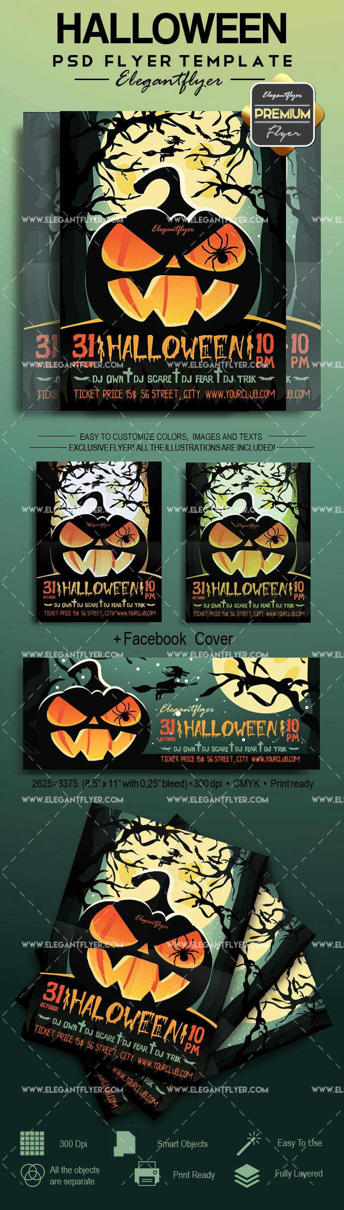 万圣节 - 传单PSD模板+ Facebook封面