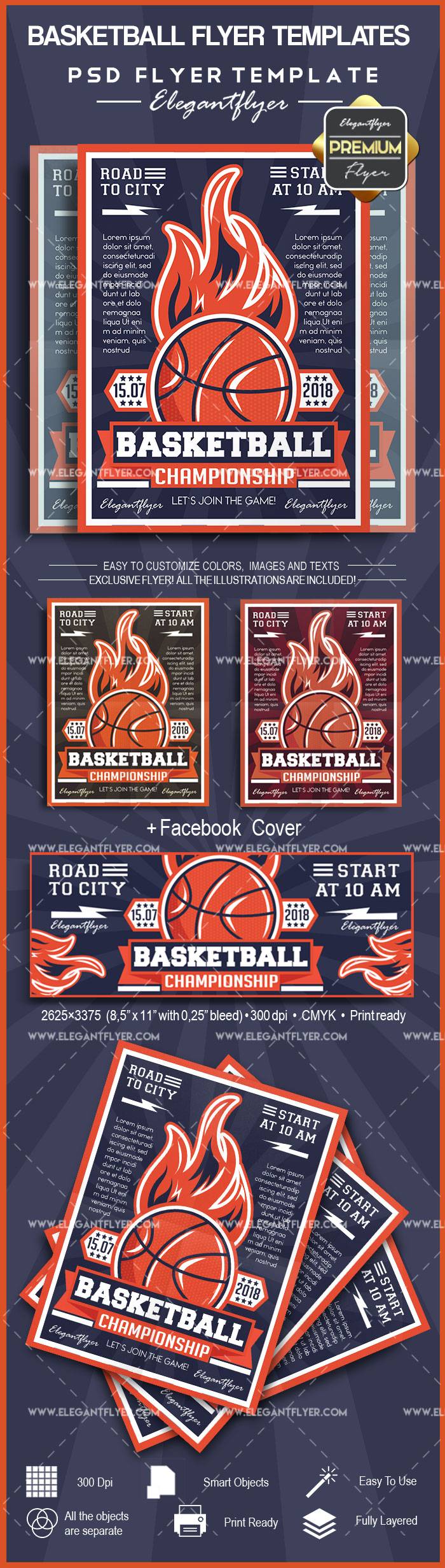 篮球传单模板 - 传单PSD模板+ Facebook封面