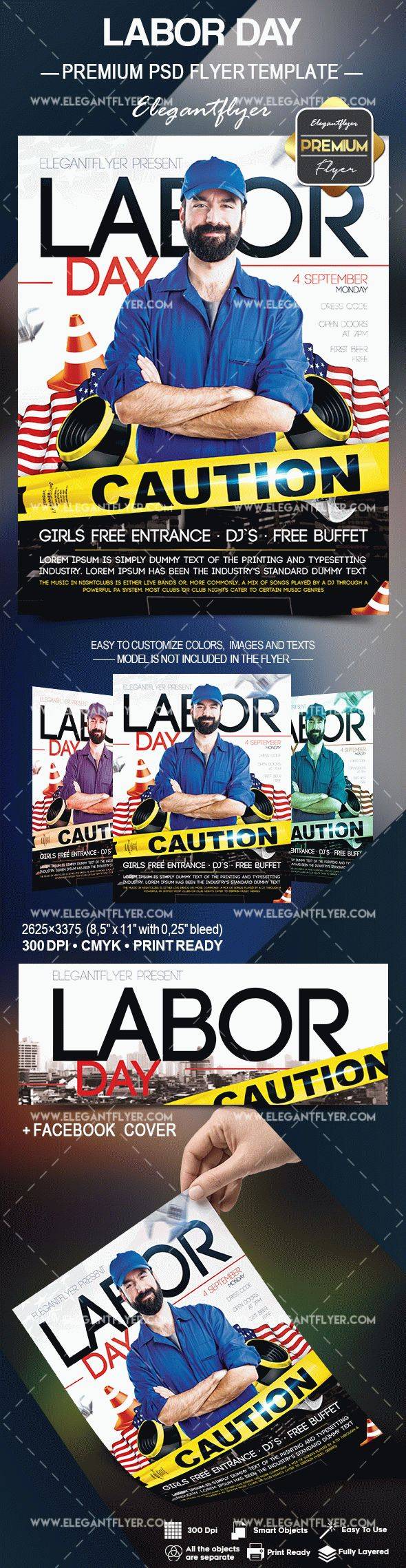 劳动节 - 传单PSD模板+ Facebook封面