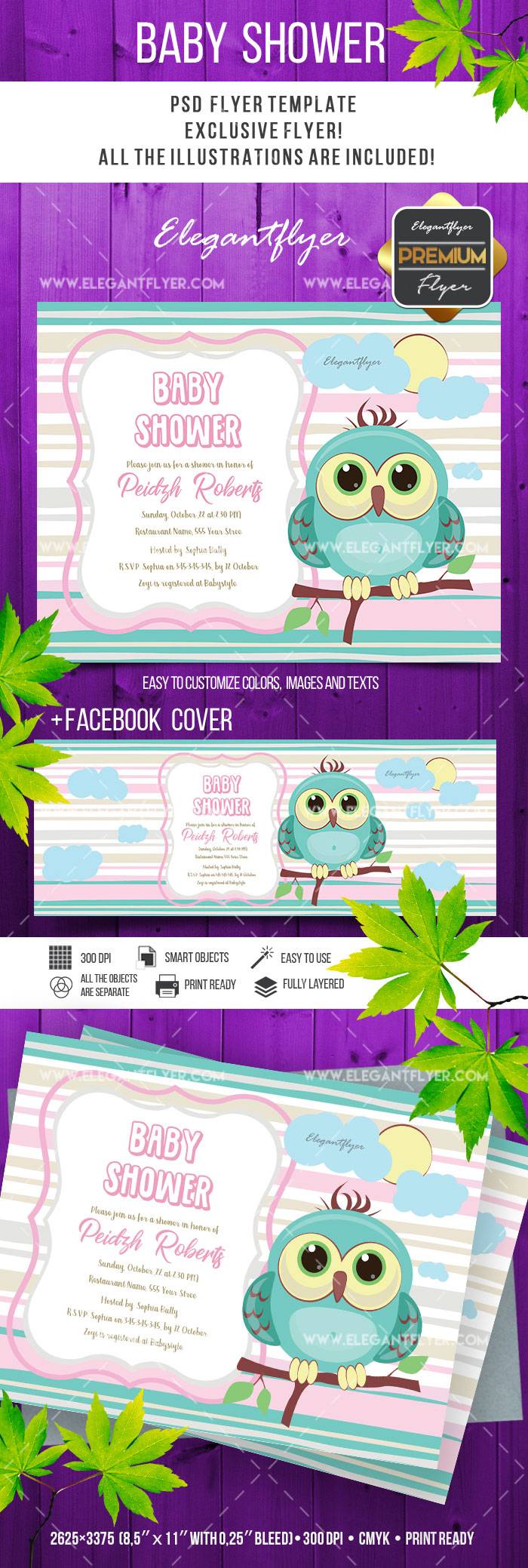 婴儿淋浴 - 传单PSD模板+ Facebook封面