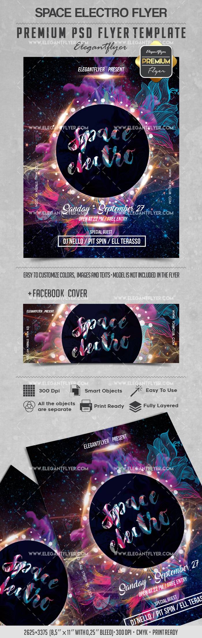 空间电子 - 传单PSD模板+ Facebook封面