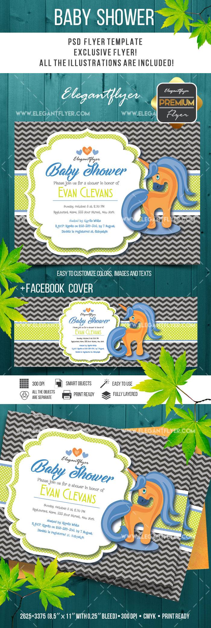 婴儿淋浴 - 传单PSD模板+ Facebook封面
