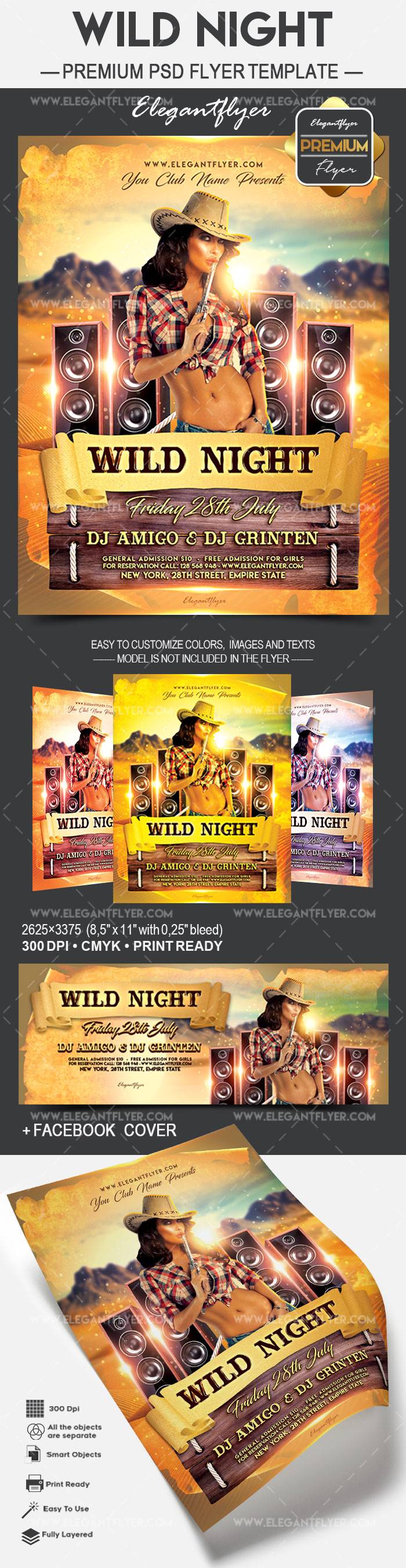 狂野的夜晚 - 传单PSD模板+ Facebook封面