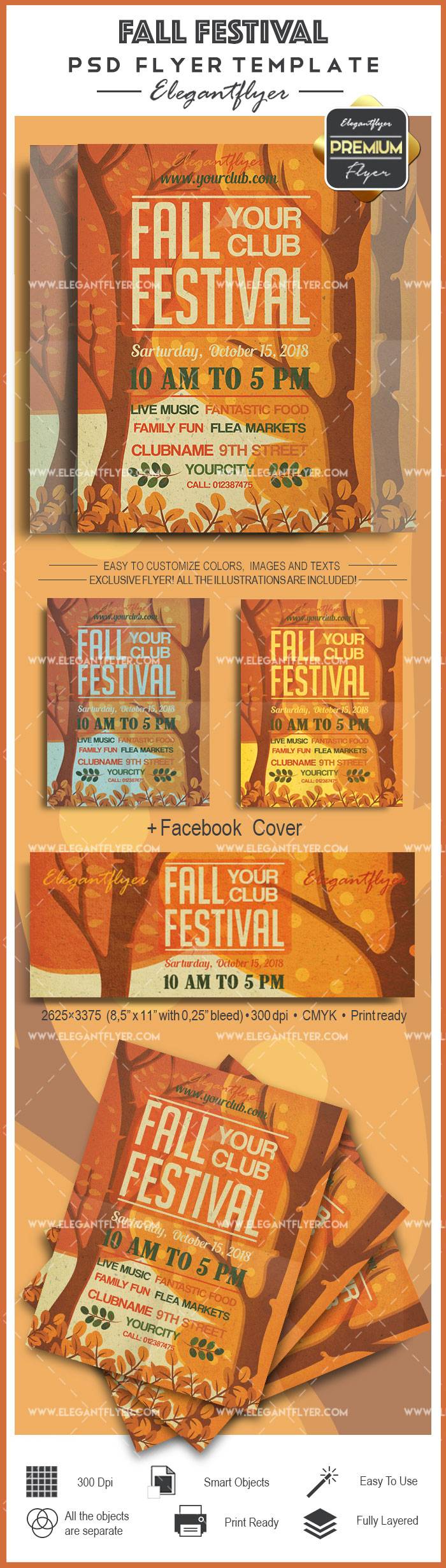 秋季节日 - 传单PSD模板+ Facebook封面
