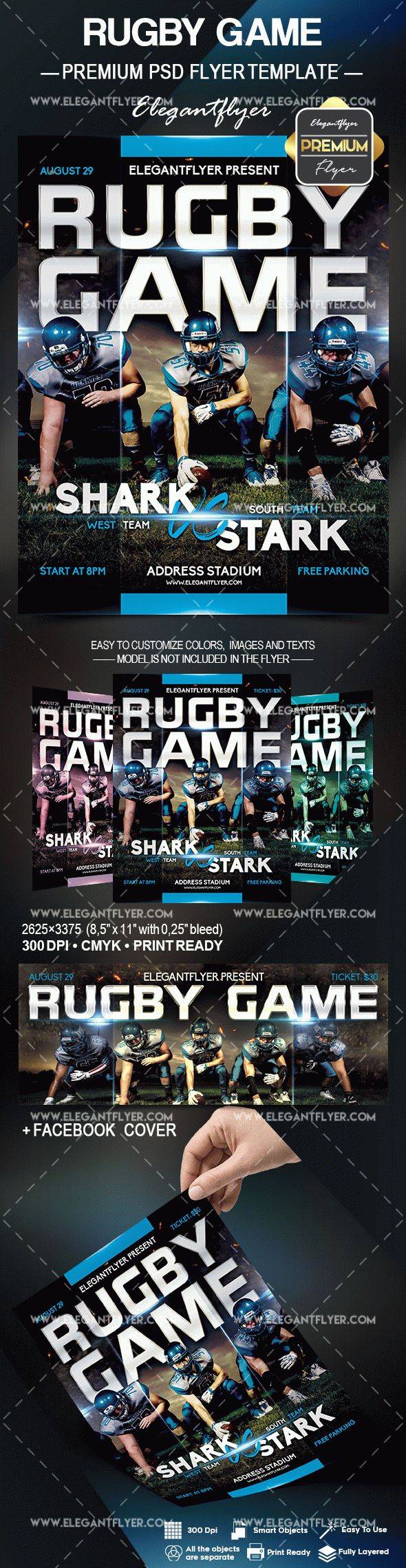 橄榄球赛 - 传单PSD模板+ Facebook封面