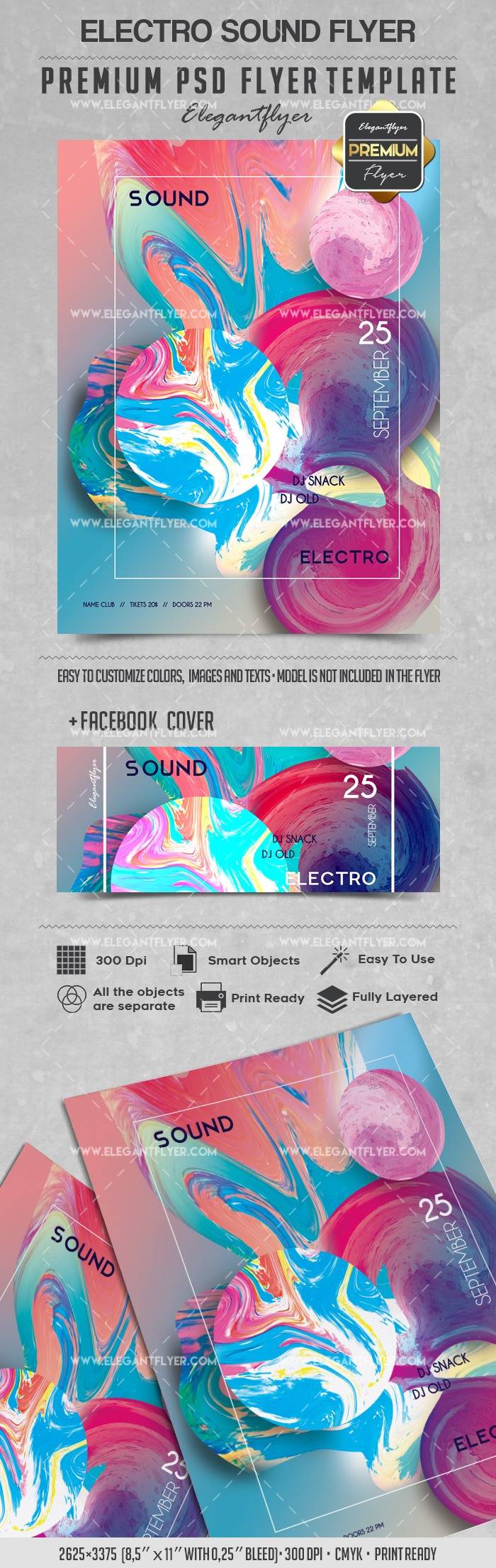 电声 - 传单PSD模板+ Facebook封面