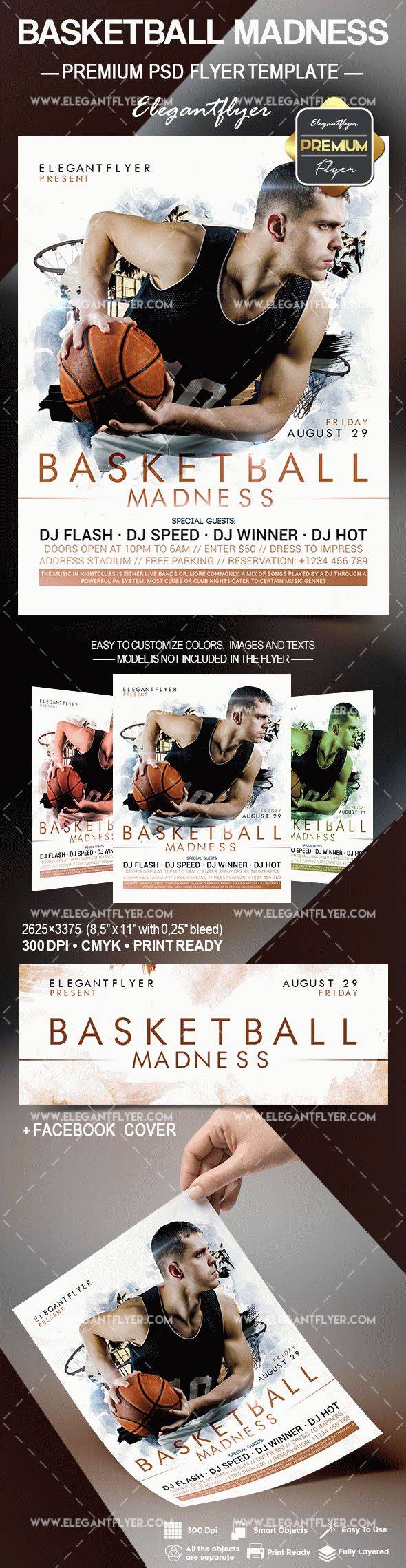 篮球疯狂 - 传单PSD模板+ Facebook封面