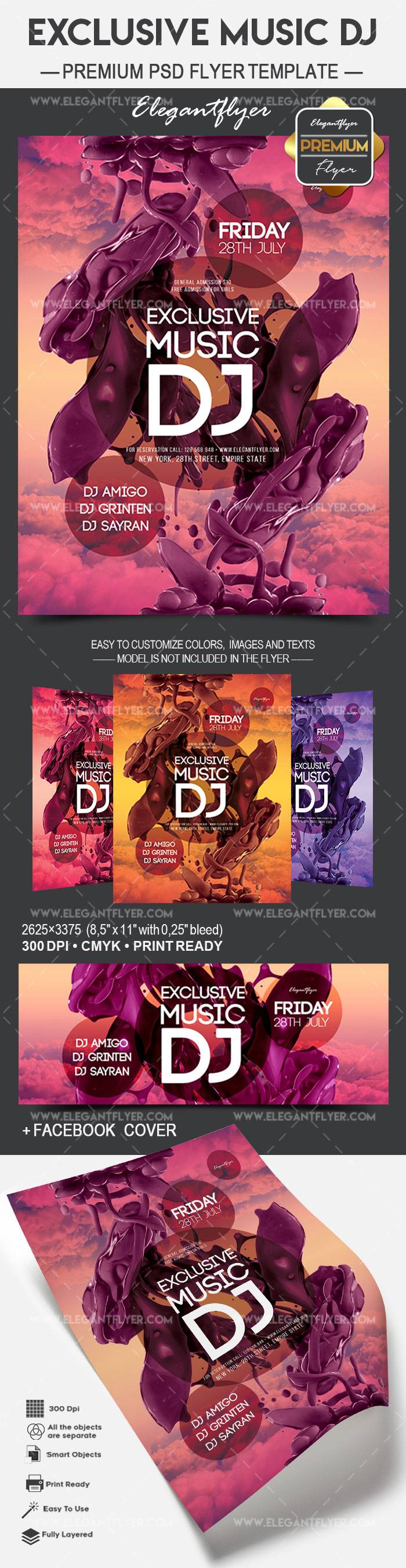 独家音乐DJ - 传单PSD模板+ Facebook封面