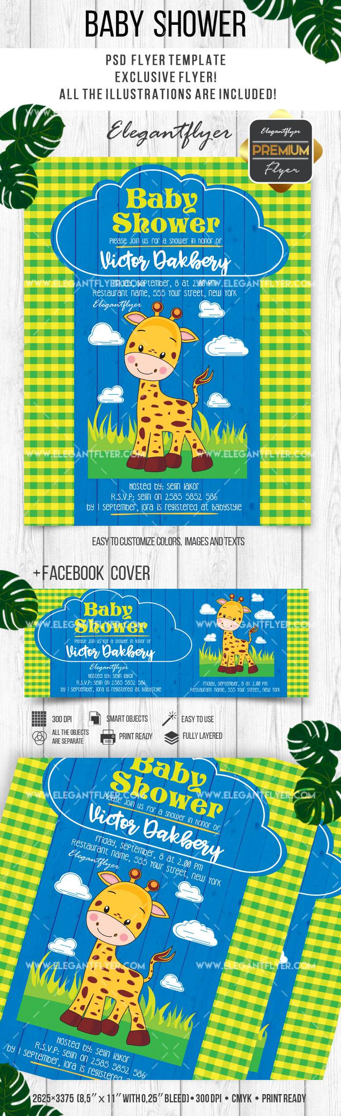 婴儿淋浴 - 传单PSD模板+ Facebook封面