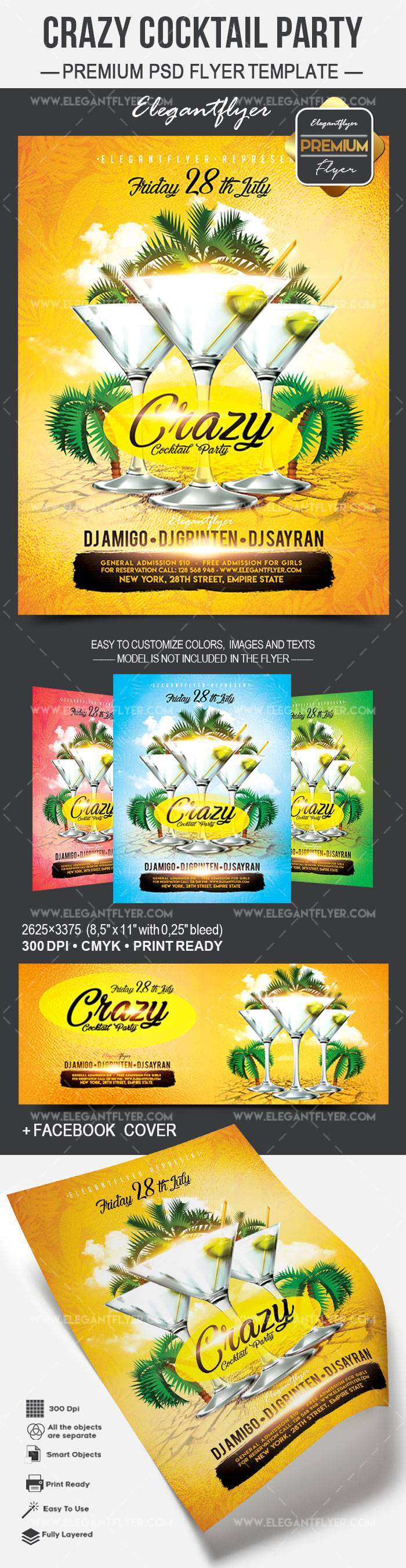 疯狂的鸡尾酒会 - 传单PSD模板+ Facebook封面