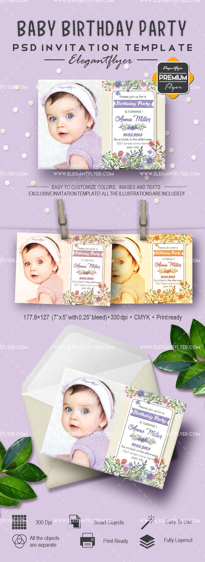 宝贝生日派对 - 邀请PSD模板