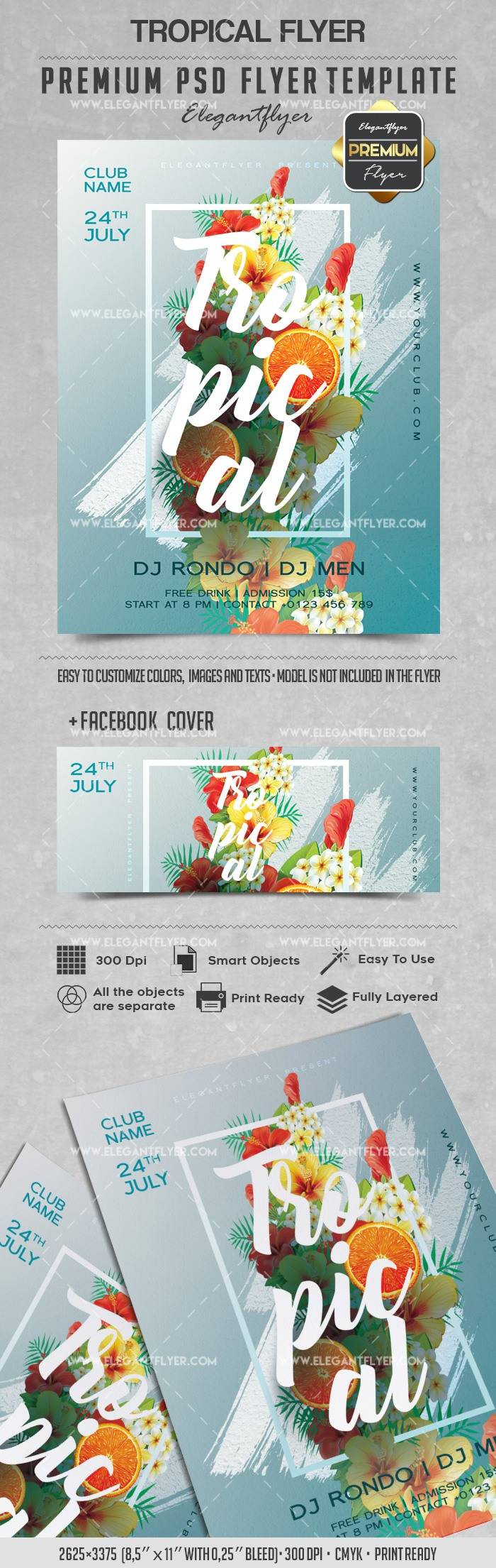 热带 - 传单PSD模板+ Facebook封面