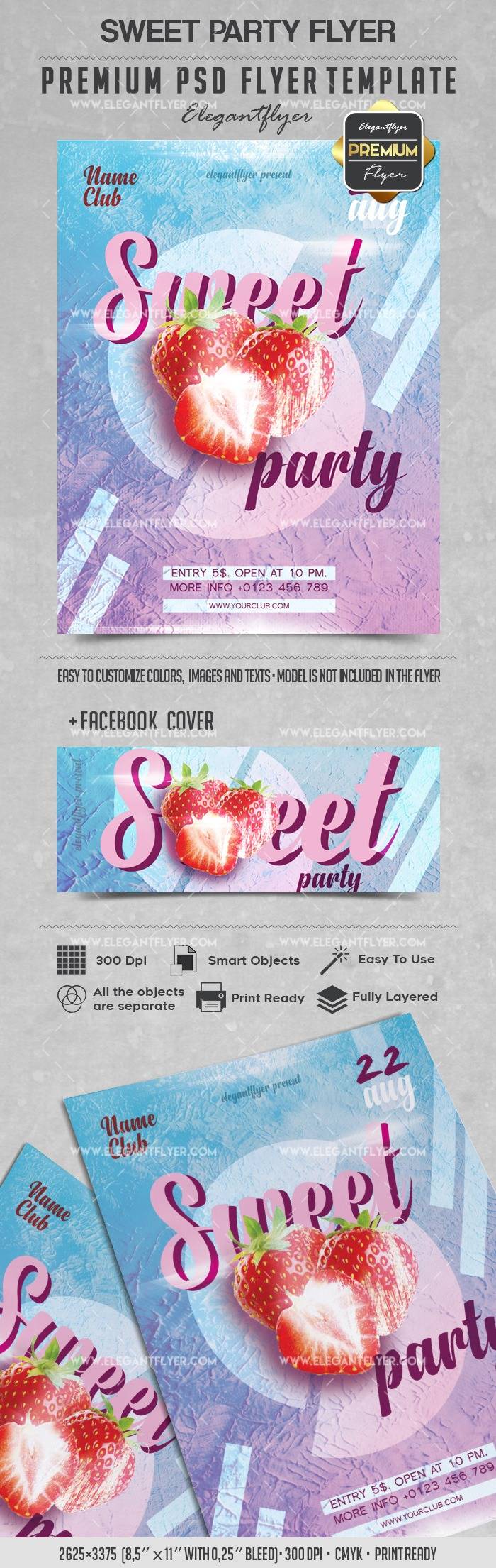 甜蜜派对 - 传单PSD模板+ Facebook封面