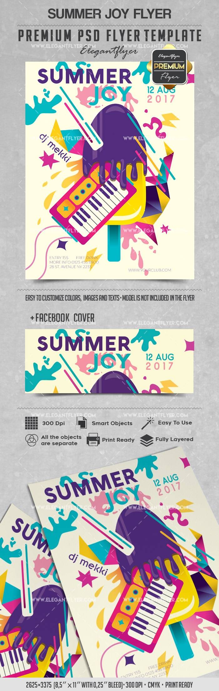 夏天喜悦 - 传单PSD模板+ Facebook封面