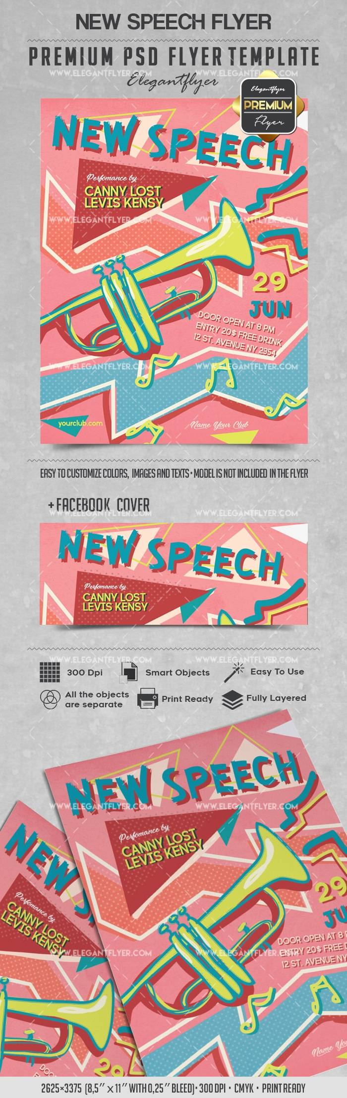新的讲话 - 传单PSD模板+ Facebook封面