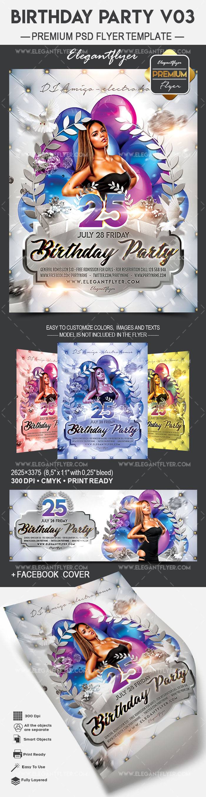 生日聚会V03 - 传单PSD模板+ Facebook的封面
