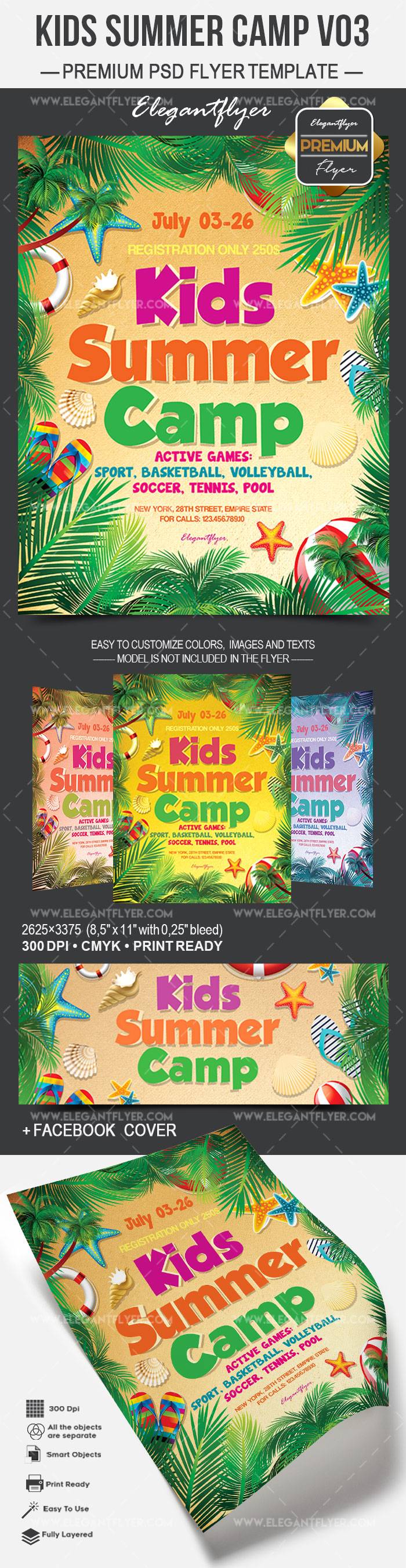 孩子夏令营V03 - 传单PSD模板+ Facebook的封面