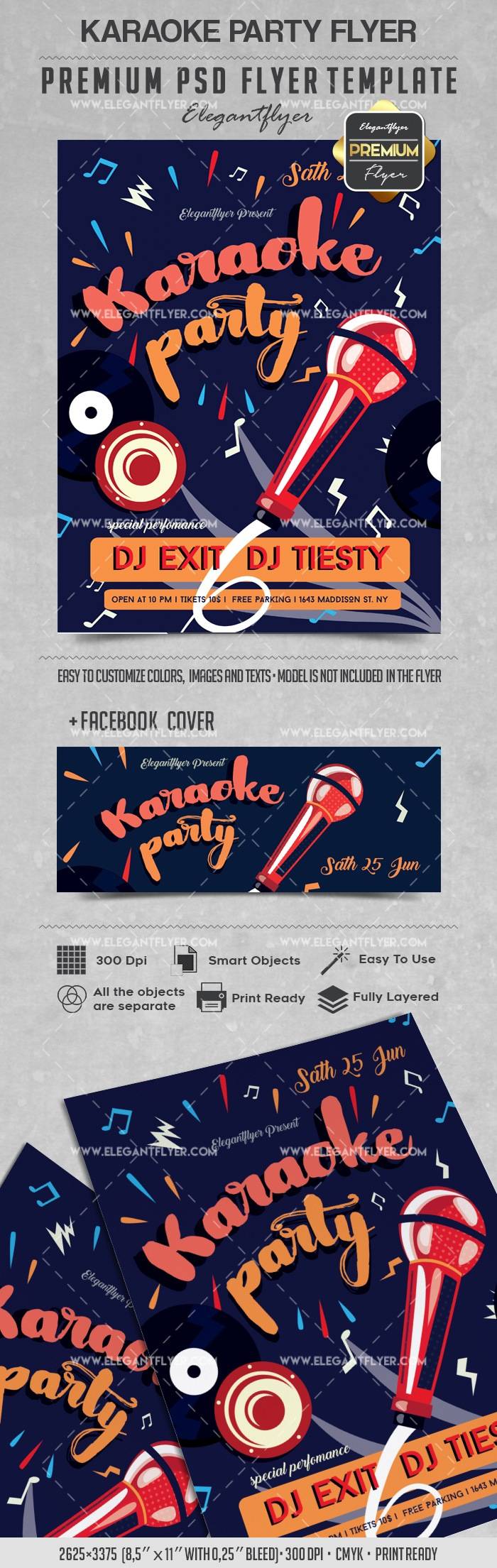 卡拉ok派对 - 传单PSD模板+ Facebook封面