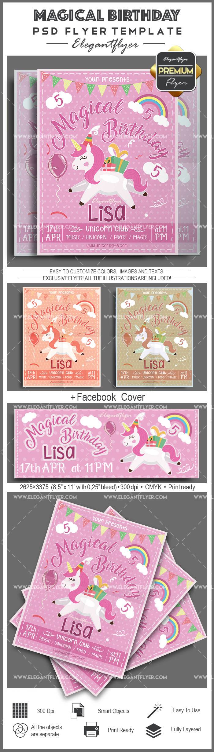 神奇的生日 - 传单PSD模板+ Facebook封面