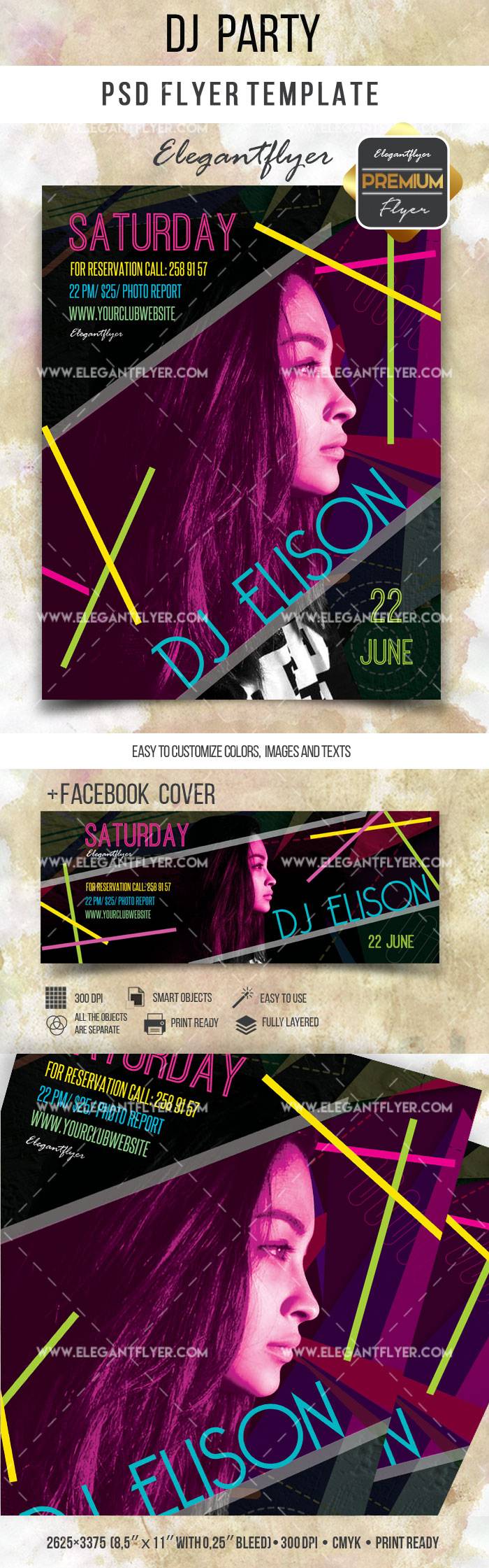 DJ派对 - 传单PSD模板+ Facebook封面