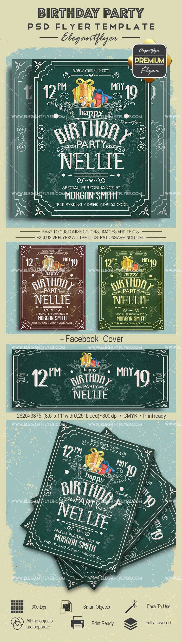 生日聚会传单PSD模板+ Facebook封面
