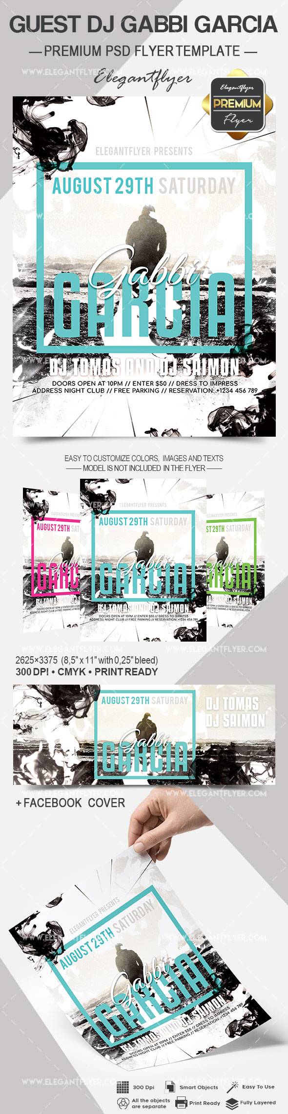 嘉宾Dj Gabbi加西亚 - 传单PSD模板+ Facebook封面