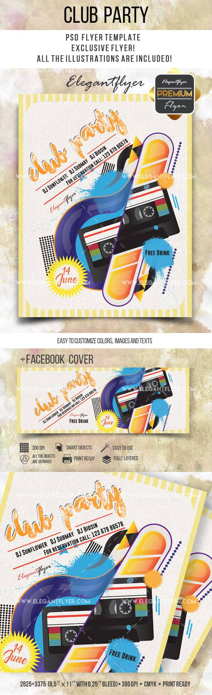 俱乐部派对 - 传单PSD模板+ Facebook封面