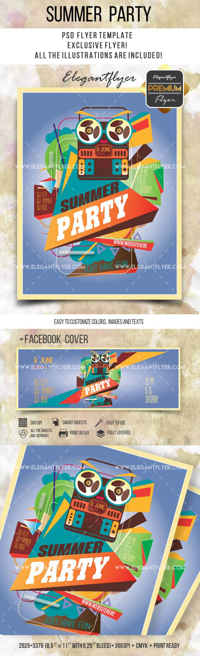 夏季派对 - 传单PSD模板+ Facebook封面