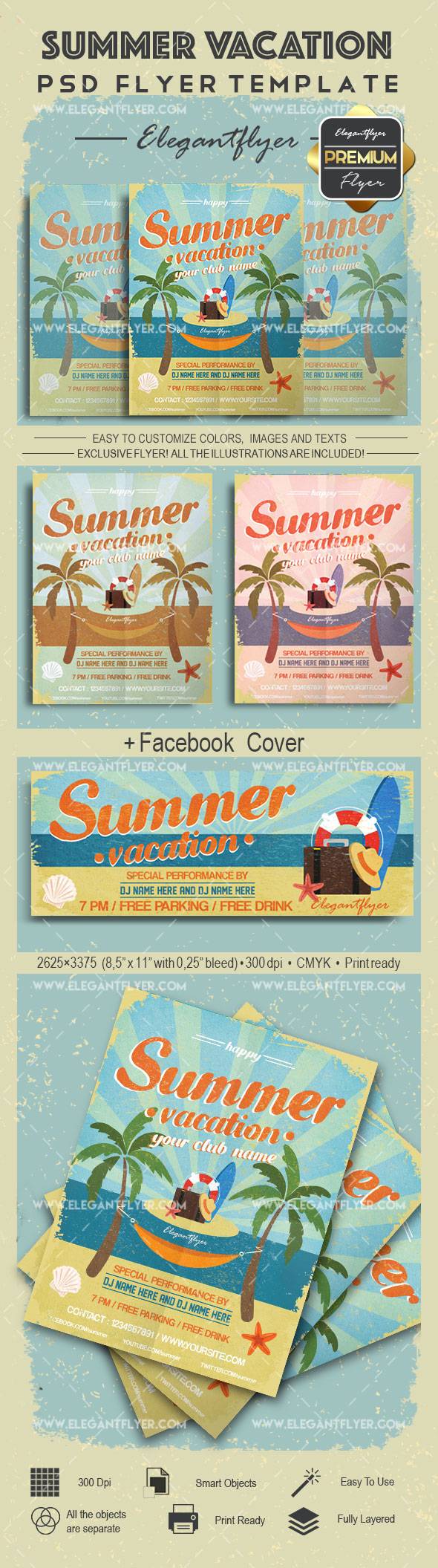暑假 - 传单PSD模板+ Facebook封面