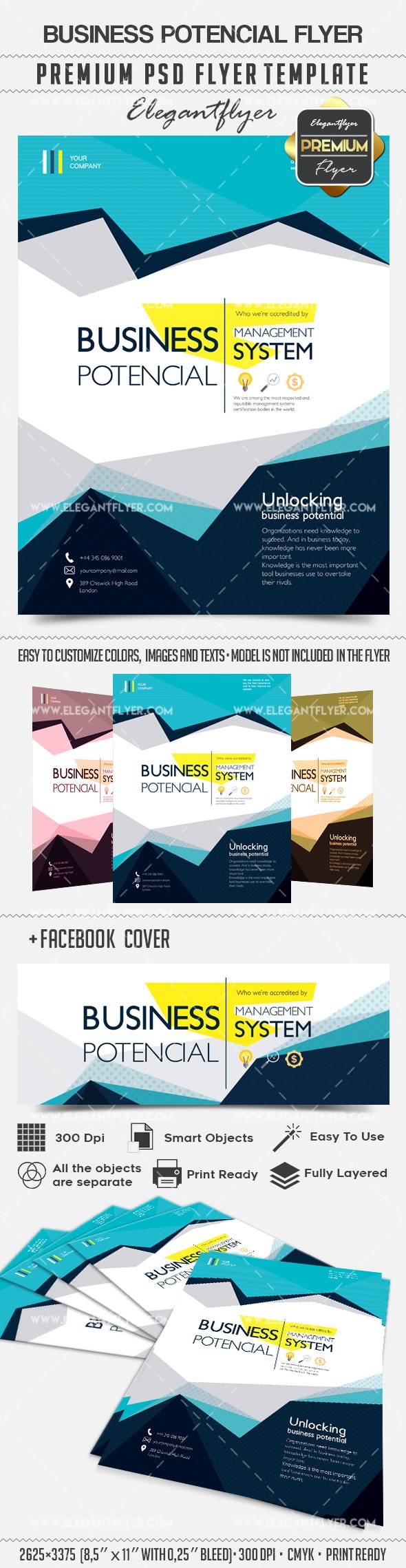 商业潜力 - 传单PSD模板+ Facebook封面