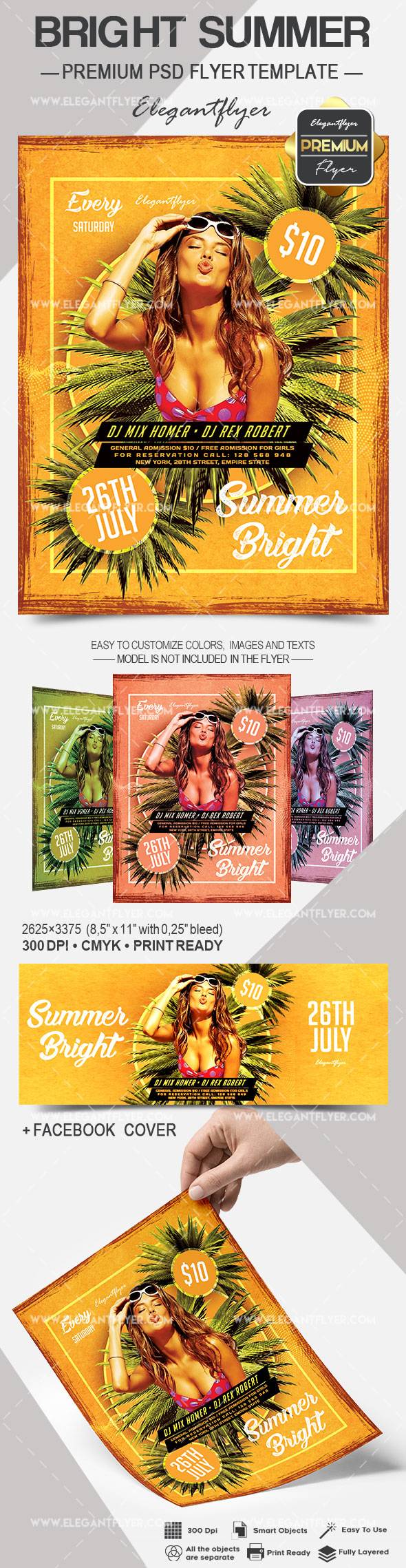 明亮的夏天 - 传单PSD模板+ Facebook封面