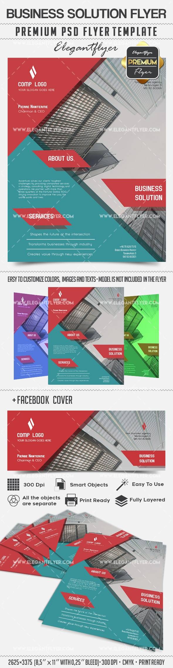 商业解决方案 - 传单PSD模板+ Facebook封面