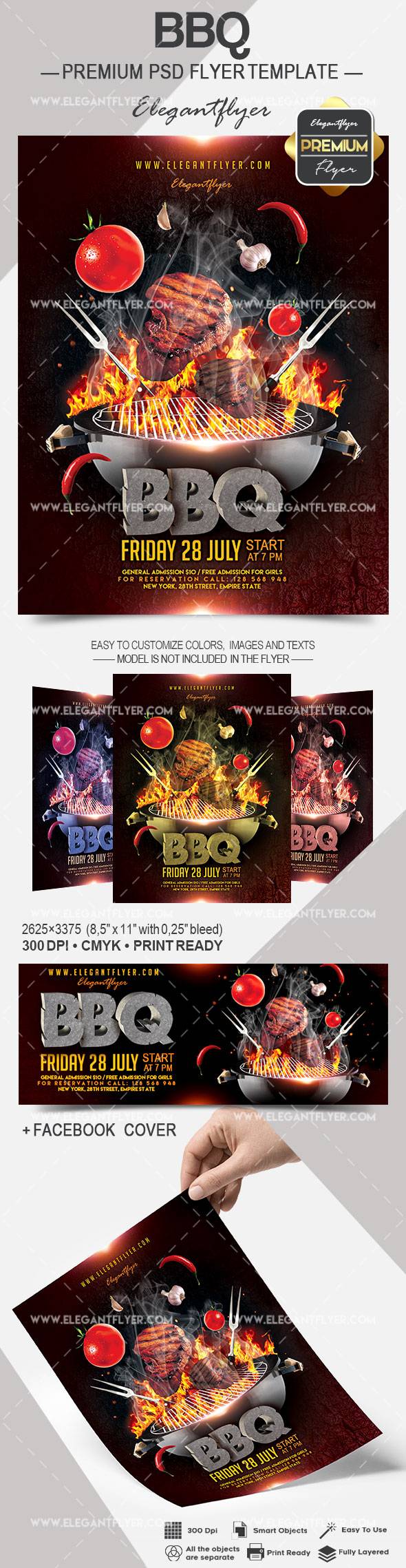 烧烤 - 传单PSD模板+ Facebook封面
