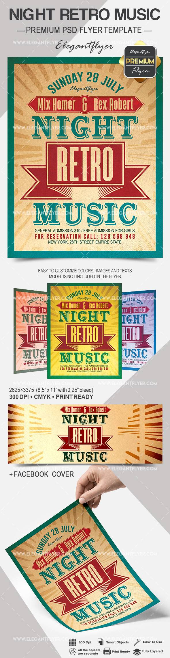 晚上复古音乐 - 传单PSD模板+ Facebook封面