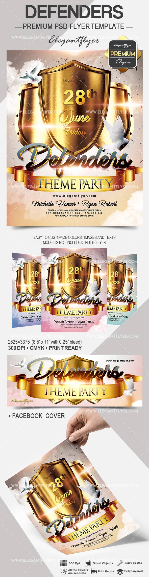 捍卫者 - 传单PSD模板+ Facebook封面