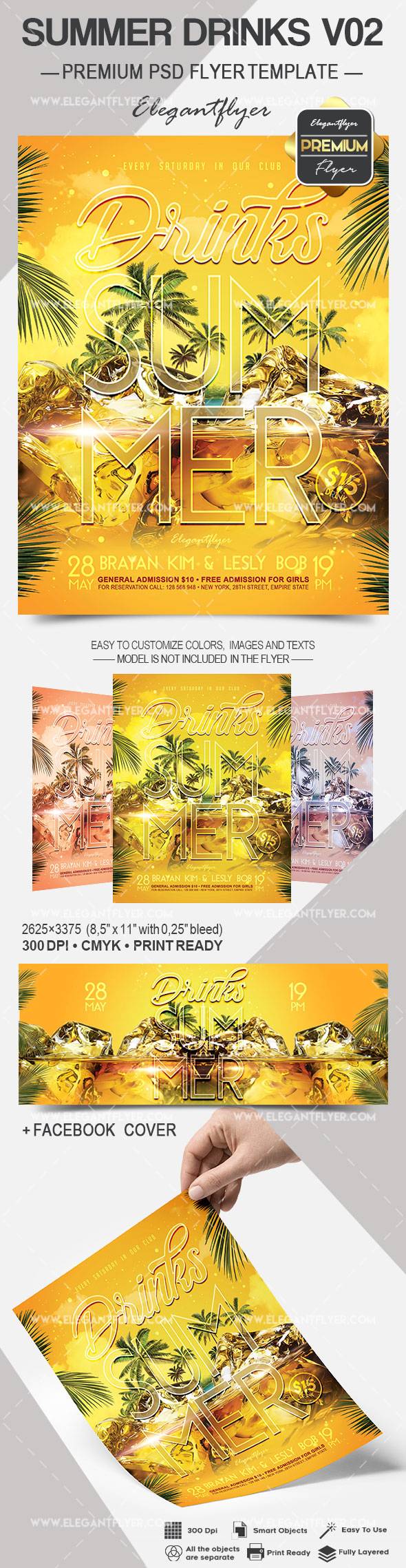 夏季饮料V02 - 传单PSD模板+ Facebook的封面
