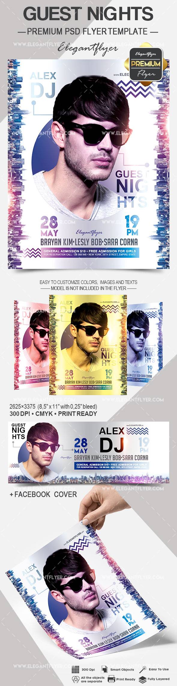 客人之夜 - 传单PSD模板+ Facebook的封面