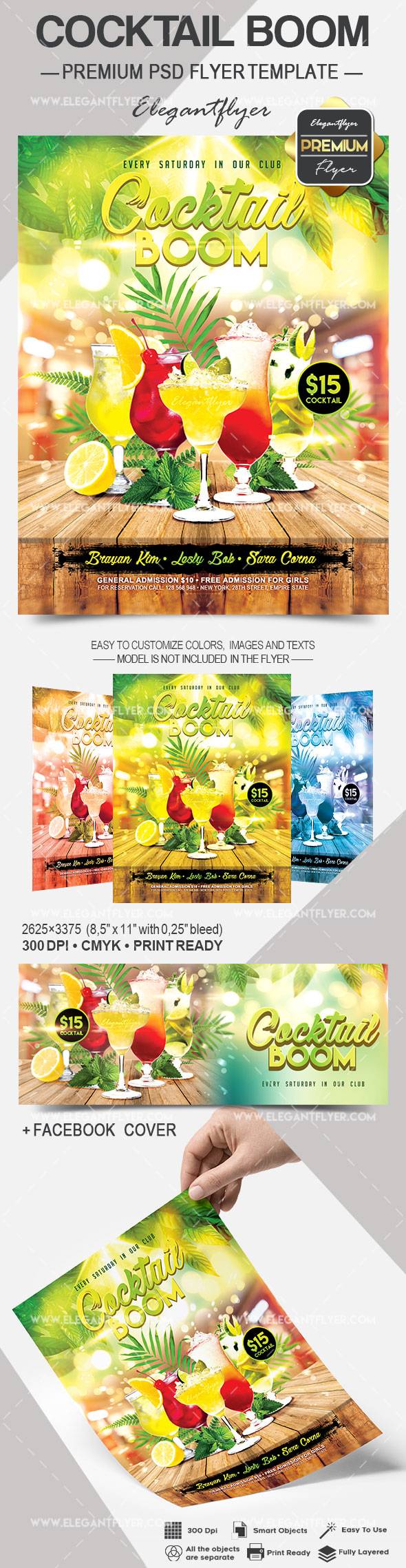 鸡尾酒景气 - 传单PSD模板+ Facebook封面