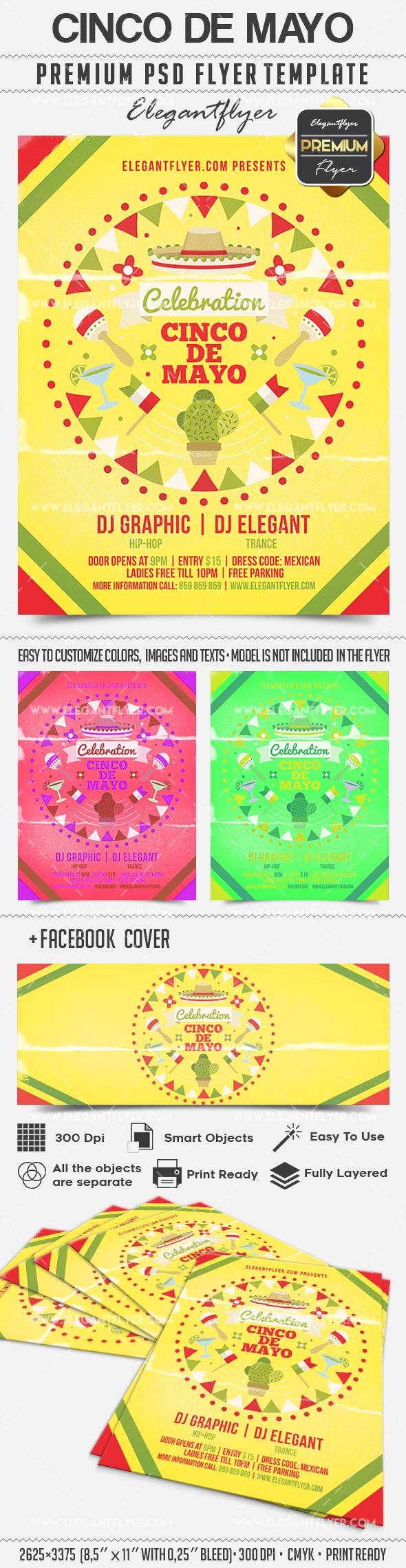 Cinco de Mayo庆祝 - 传单PSD模板+ Facebook封面
